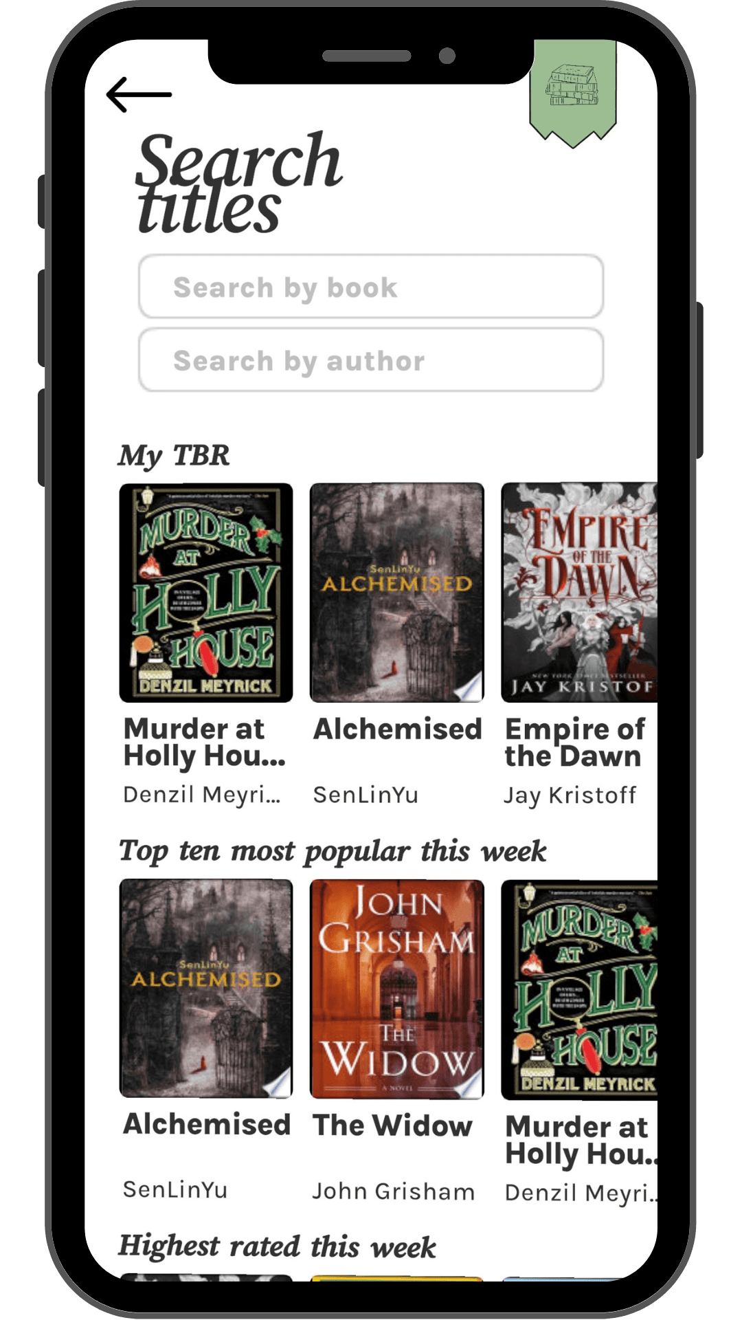 Browse titles to select your next read. Here you can add titles to your TBR and see what's popular this week.